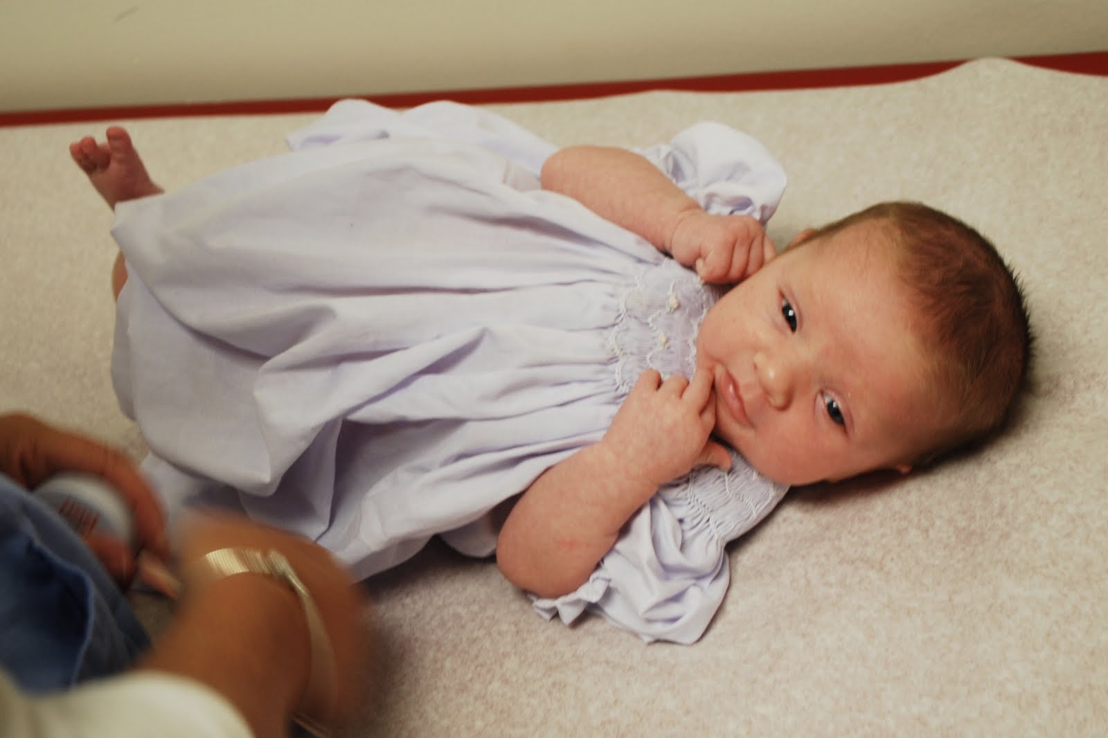 She's a growing baby! Her pediatrician said that she looks great and is growing well. She was supposed to get her 2nd Hepatitis B shot, but wasn't able to get it since it hadn't been a full 30 days since she was born. So she'll get that shot at her 2 month checkup.